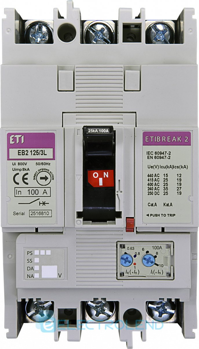Автоматичний вимикач ETI 4671026 EB2 125/3L 125А 3Р 25kA