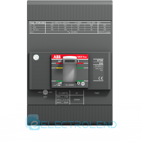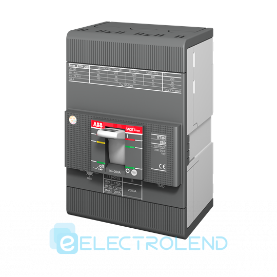 Автоматичний вимикач ABB Tmax XT3N 250 TMD 200-2000 200А 3Р F F 36кА 1SDA068058R1
