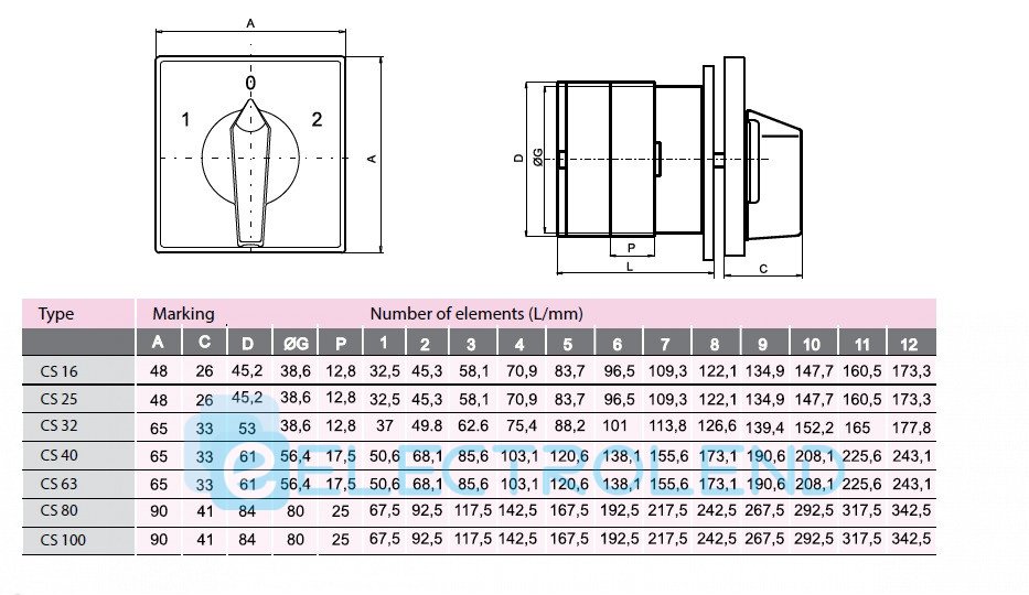 Перемикач кулачковий CS 40 53 U 3P 40А 1-0-2 4773123 ETI