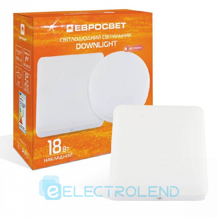 Світильник точковий накладний ЕВРОСВЕТ 18Вт квадрат LED-SS-120-18 6400К без рамки 000057963