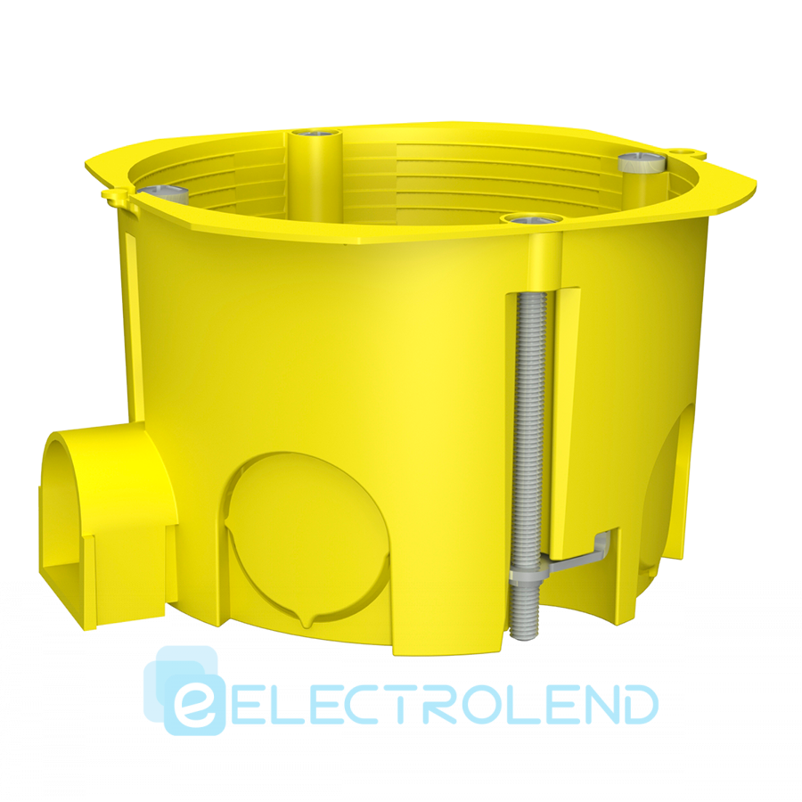 Монтажний бокс MB002 Plank Electrotechnic – це установча коробка прихованого монтажу, котра застосовується для порожніх стін з гіпсокартону, та інших, завдяки наявності в коробці фіксуючих лапок. Підрозетник MB002 це якісний, місткий, надійний та зручний в монтажі бокс для встановлення електрофурнітури. Завдяки збільшеному діаметру і глибині на 5 см, а це внутрішній діаметр коробки 65мм і глибина 45мм, в монтажний бокс MB002 можна встановити практично будь-який механізм розетки і вимикача. Монтажна коробка з легкістью набирається в блоки для 2,3,4, 5-ти або більше встановлюючих місць, з зберіганням міжосьової відстані 71мм. Монтажний бокс складається з пластикової коробки, 2-х фіксуючих лапок, та 2-х шурупів. Матеріал коробки це композиція на основі поліпропілену з термостійкістю до 850°С, котрий не підтримує горіння та не містить шкідливих речовин.