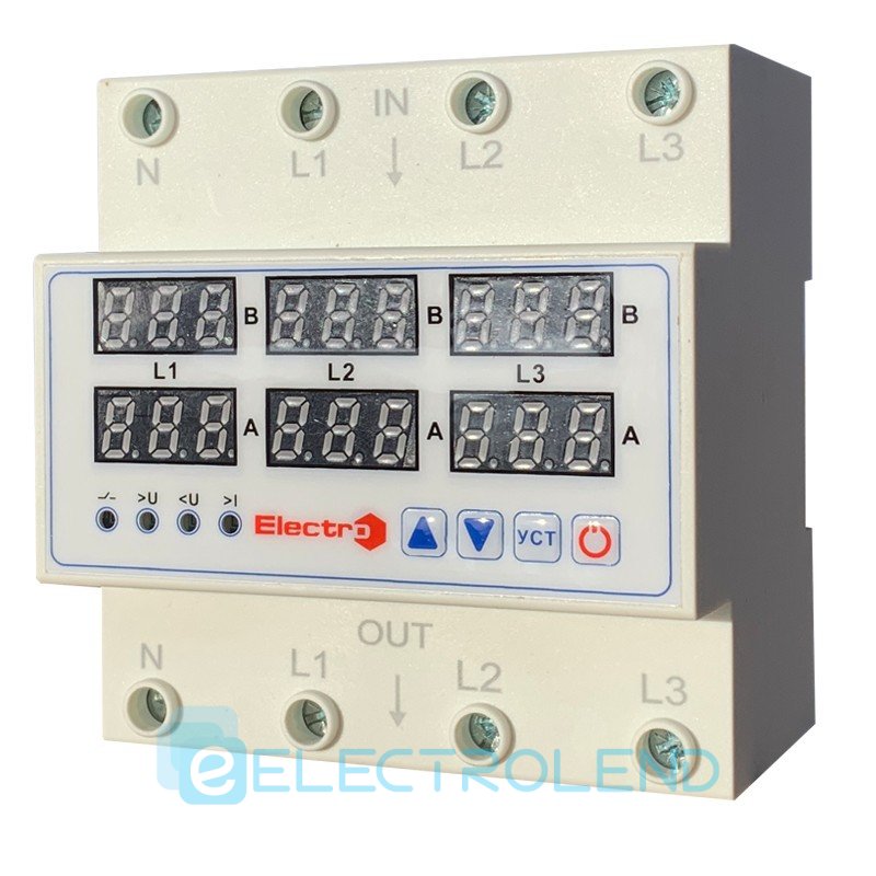 Реле контролю напруги та струму РКН-3VA, 3P+N, 63А, 400В вольтметр / амперметр Electro
