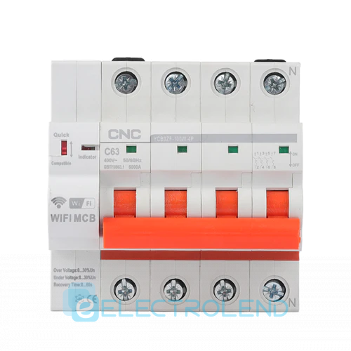 Модульний автоматичний вимикач YCB9ZF-100W-4P 100A 6кА тип D з блоком дистанційного (wi/fi) керування CNC