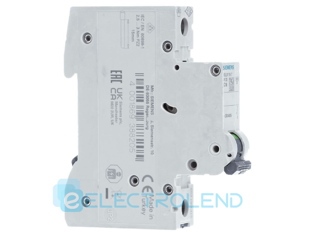Автоматичний вимикач SIEMENS 230/400V 6кА 1-пол. C 16A 5SL6116-7