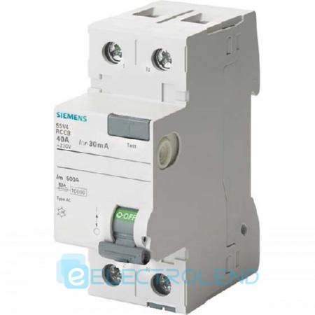 5SV4316-0 Пристрій захисного вимкнення (ПЗВ) Siemens АС 2P 63А/30мА 230В