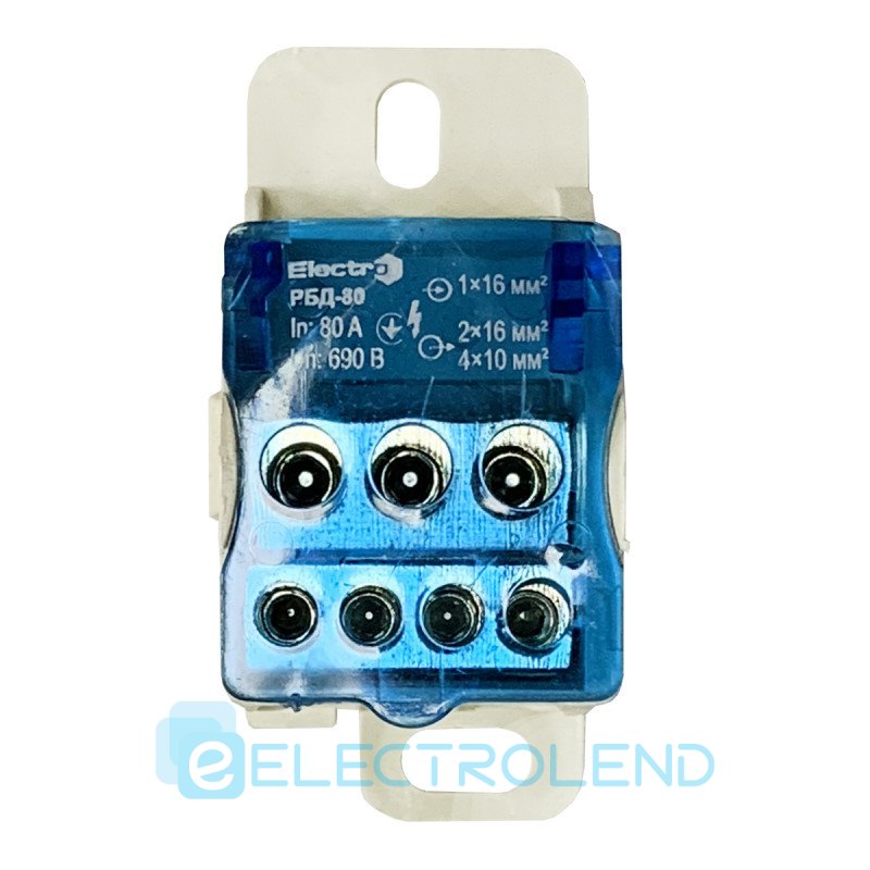 Розподільчий блок РБД-80, АС 690В, 80A, 1х16мм2 / 2х16мм2, 4х10мм2, луджена латунь Electro