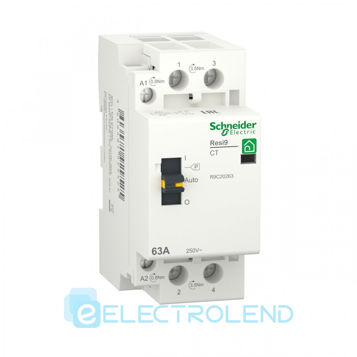 R9C20263 Контактор Resi9 1P+N 63A 2NO ~230В/50Гц Schneider Electric