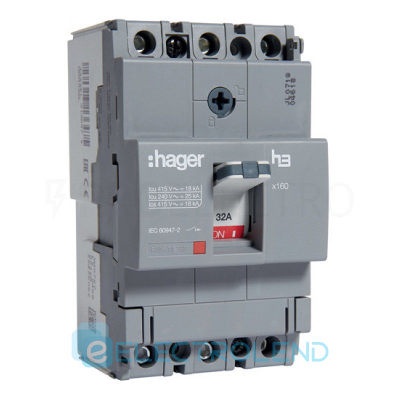 Автоматичний вимикач HDA016L x160, In=16А, 3п, 18kA, Hager