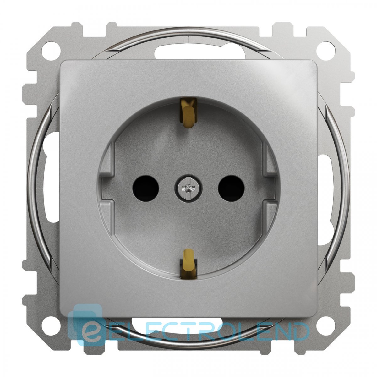 SDD113022 Розетка з заземлення та зі шторками алюміній Sedna Design Schneider Electric