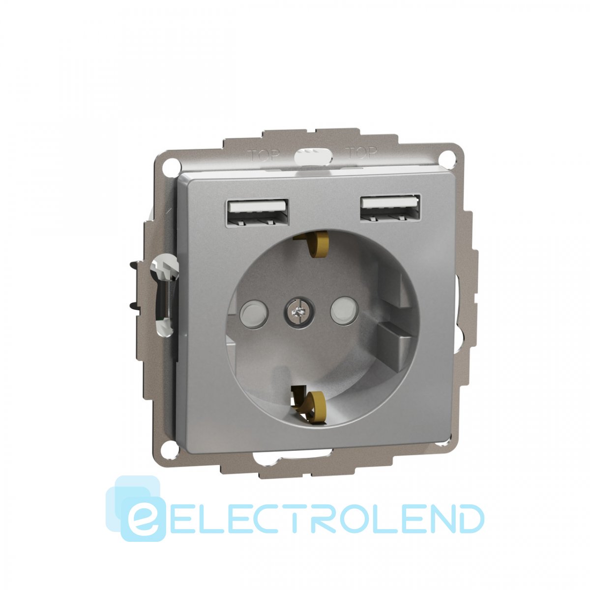 SDD113052 Розетка з заземленням + 2 USB тип А алюміній Sedna Design Schneider Electric
