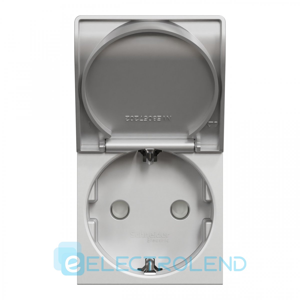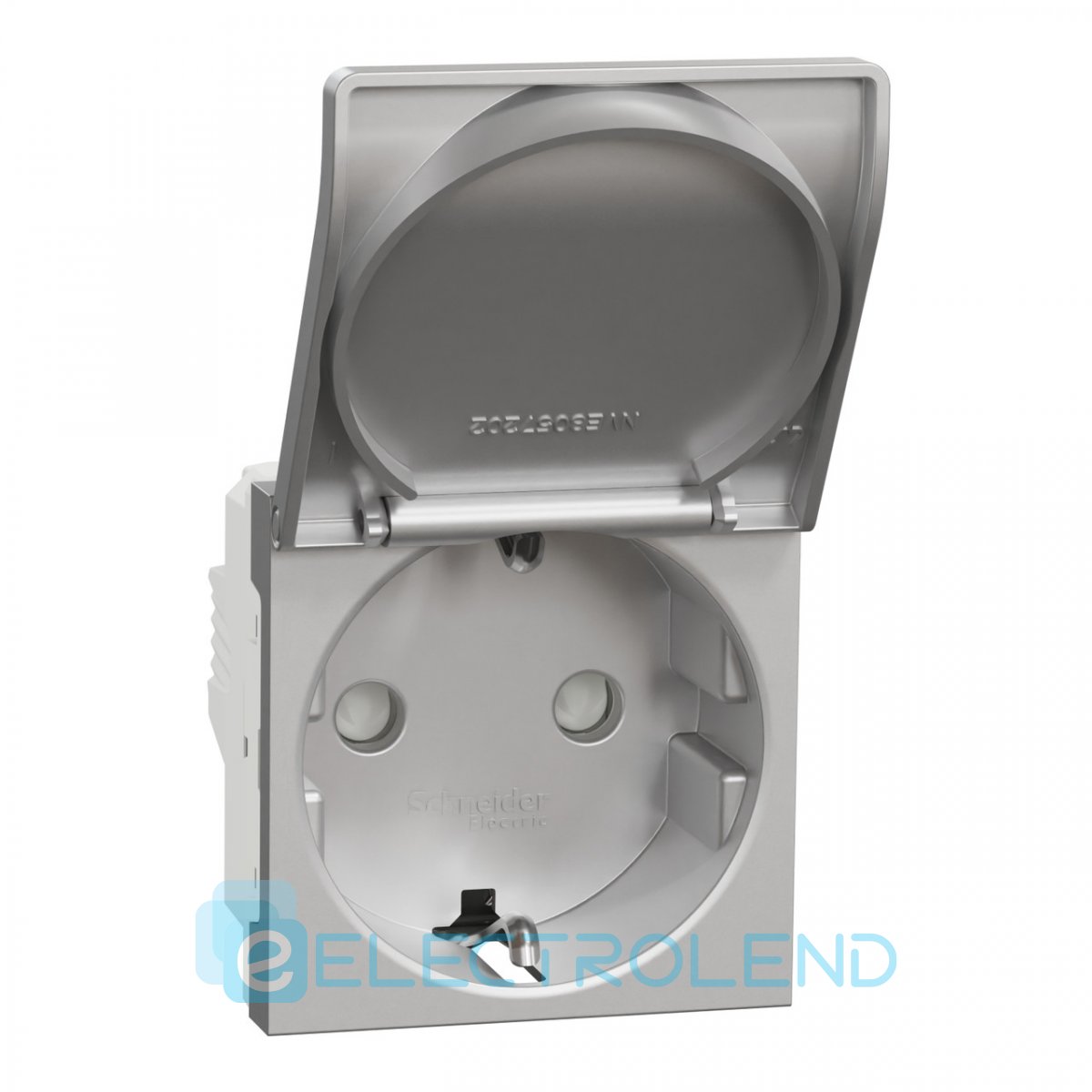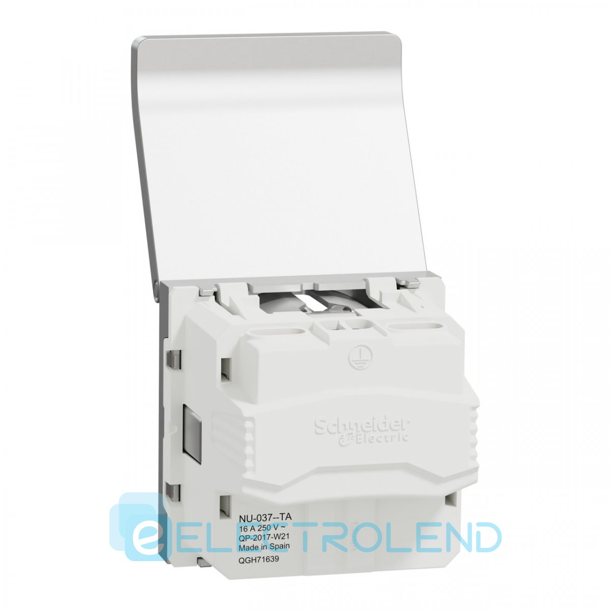 NU303730TA Unica New Розетка із заземленням, зі шторками, з кришкою, 16А, алюміній Schneider