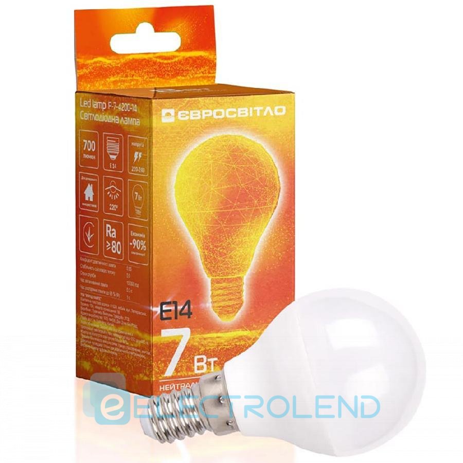Лампа світлодіодна Євросвітло 7Вт 4200К P-7-4200-14 Е14 000057327