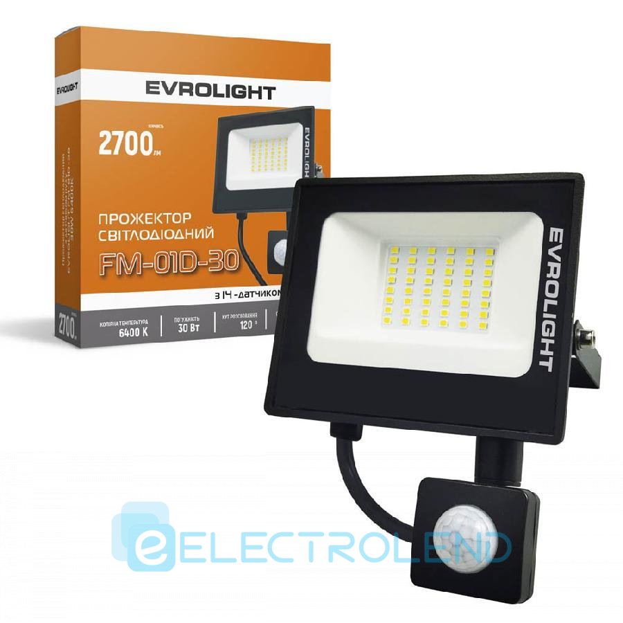 Прожектор світлодіодний з датчиком руху EVROLIGHT FM-01D-30 30W 6400К 000057052