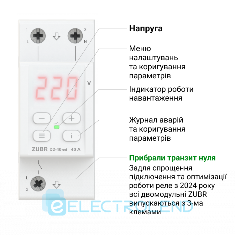 Реле напруги ZUBR D2-32 red