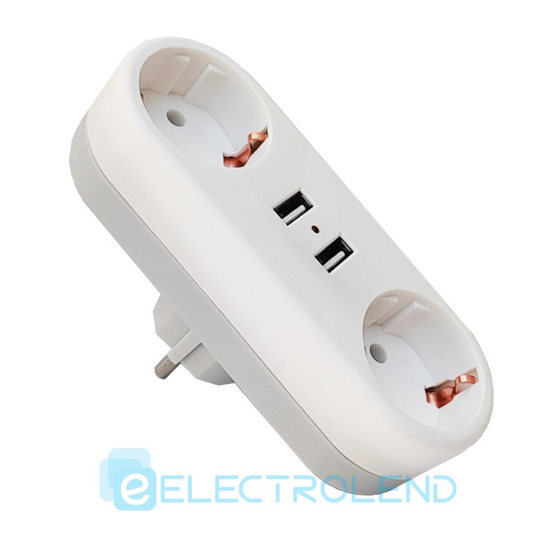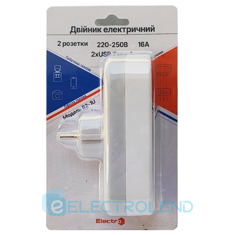 Мережевий розгалужувач B2-1U (2розетки+2USB) 16A, 250В, ElectrO
