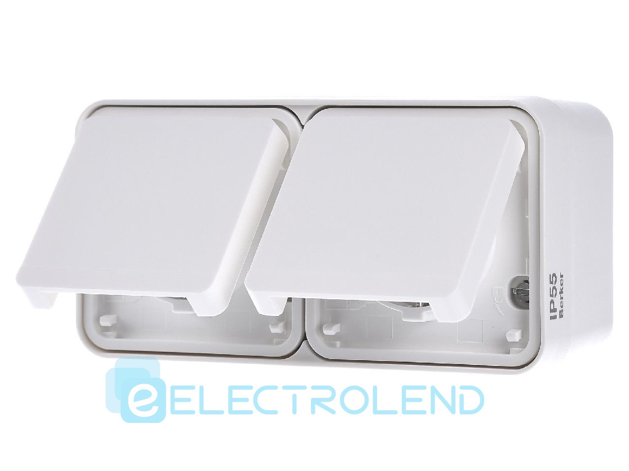 47843512 Розетка з з/к подвійна горизонтальна IP55, полярна біла, 16А/250В W.1 Berker