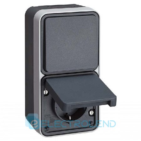 47703525 Розетка з з/к подвійна вертикальна IP55, сіра, 16А/250В W.1 Berker