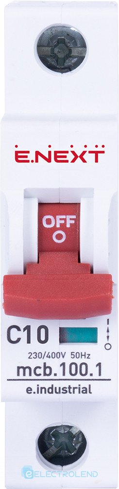 I0180002 Модульний автоматичний вимикач e.industrial.mcb.100.1.C10, 1 р, 10А, C, 10кА