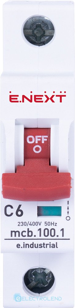 I0180001 Модульний автоматичний вимикач e.industrial.mcb.100.1.C6, 1 р, 6А, C, 10кА