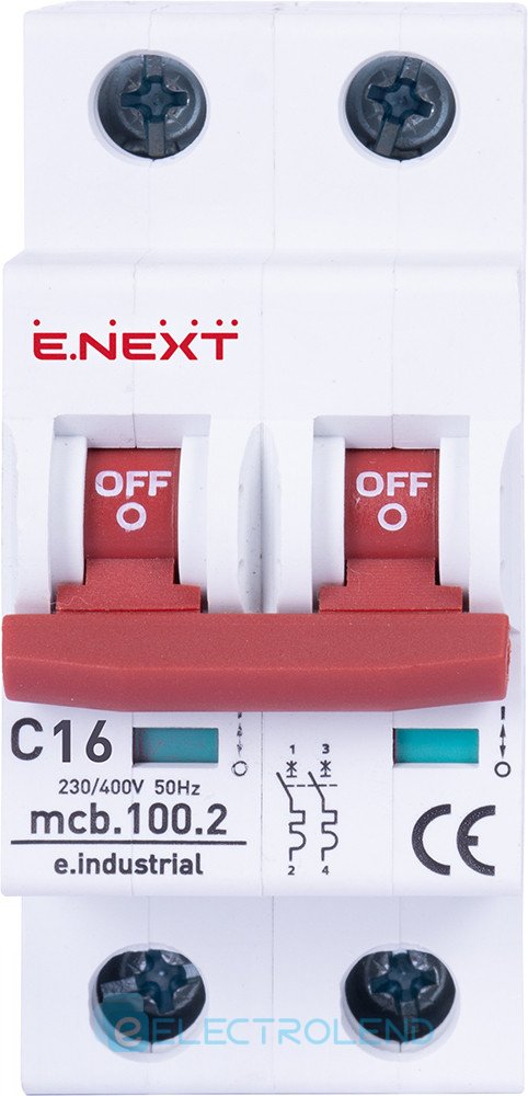 I0180012 Модульний автоматичний вимикач e.industrial.mcb.100.2.C16, 2 р, 16А, C, 10кА
