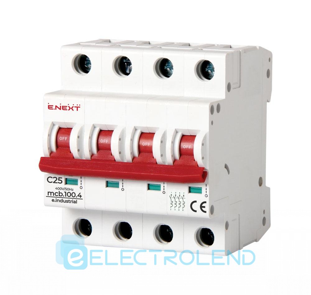 I0180032 Модульний автоматичний вимикач e.industrial.mcb.100.4.C25, 4 р, 25А, C, 10кА