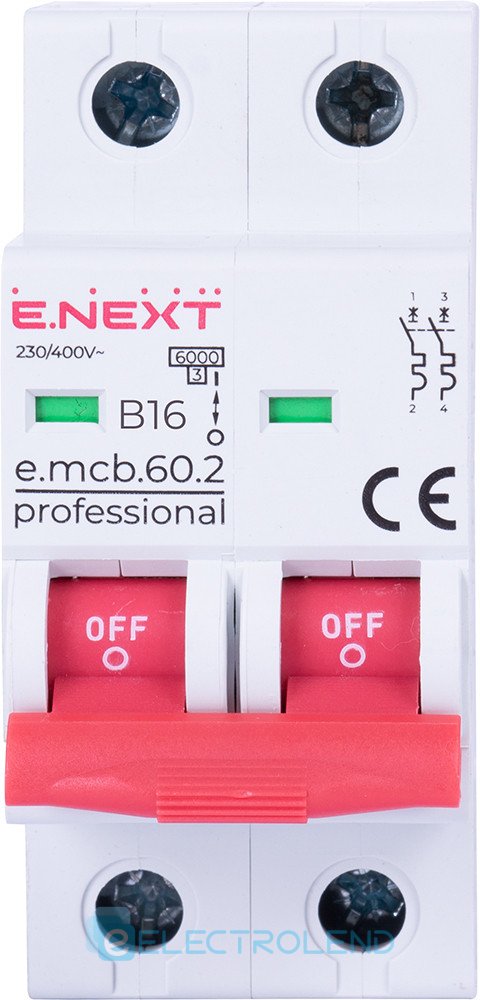P041017 Модульний автоматичний вимикач e.mcb.pro.60.2.B 16 new, 2р, 16А, В, 6кА, new