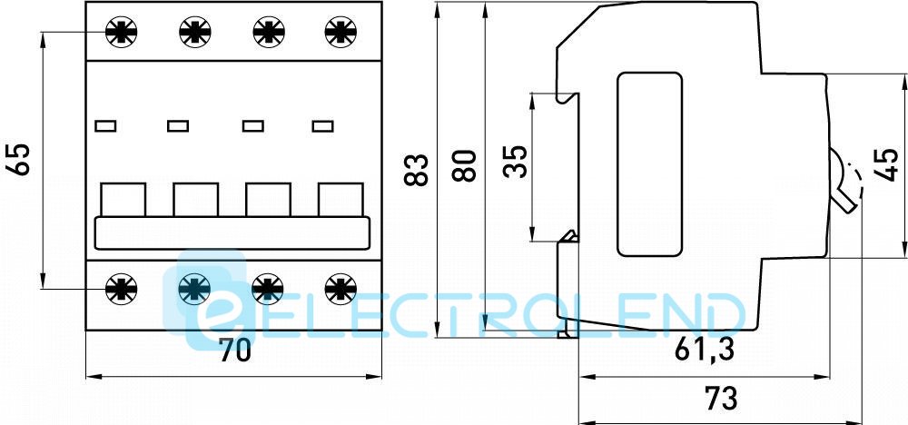 S002046 Модульний автоматичний вимикач e.mcb.stand.45.4.C10, 4р, 10А, C, 4,5 кА