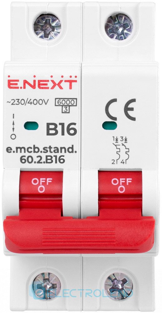 S001117 Модульний автоматичний вимикач e.mcb.stand.60.2.B16, 2р, 16А, B, 6кА