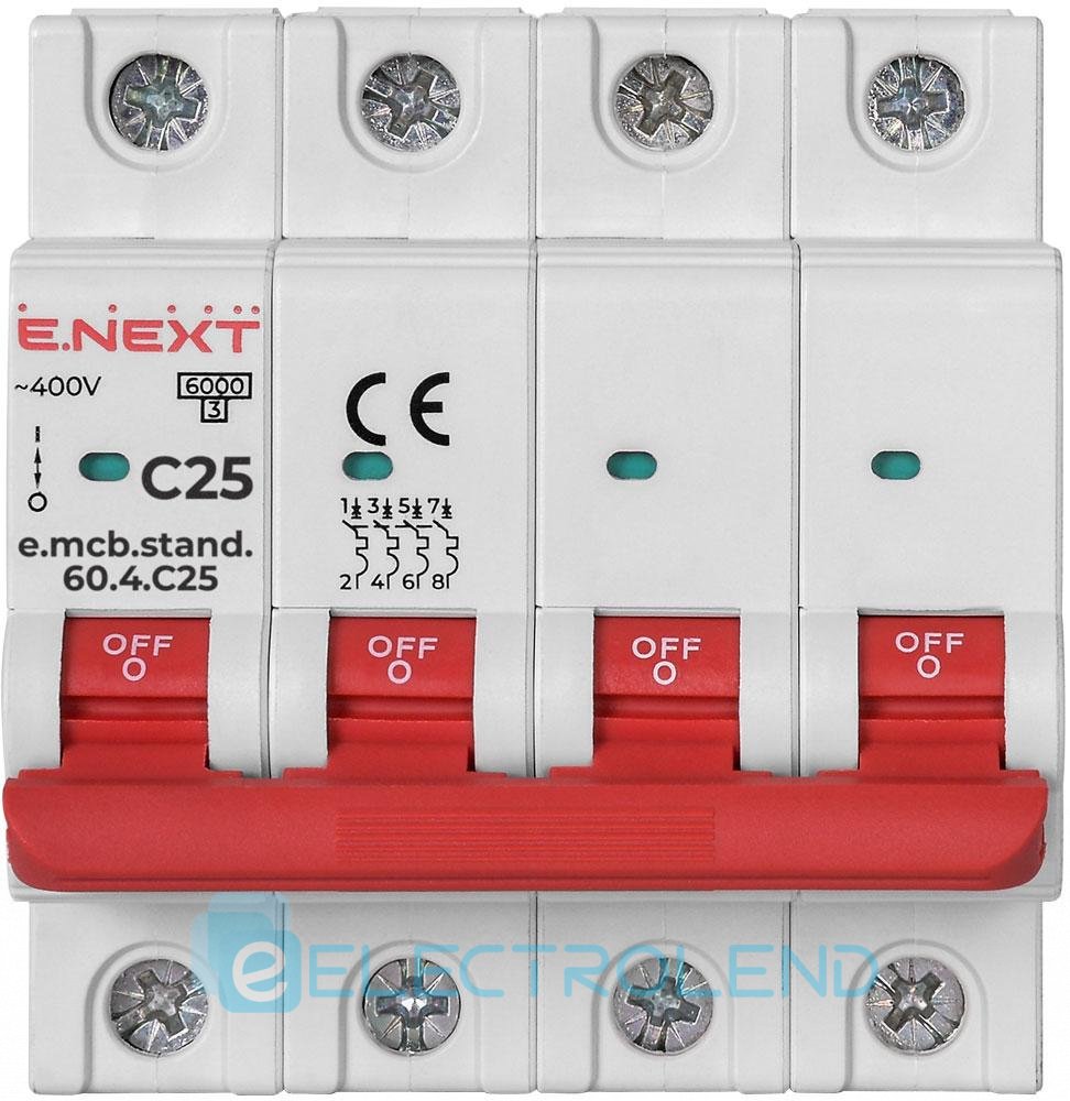 S002149 Модульний автоматичний вимикач e.mcb.stand.60.4.C25, 4р, 25А, C, 6кА