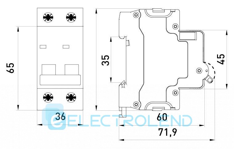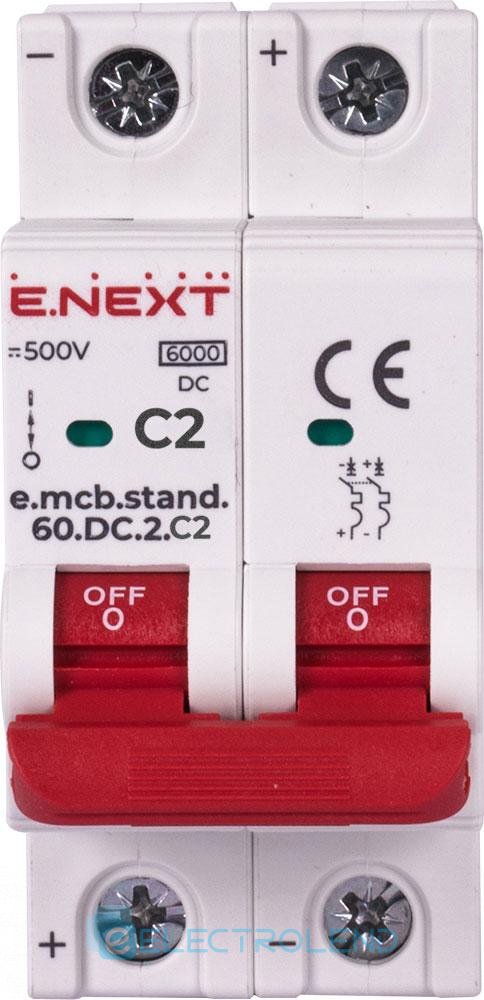 S081014 Модульний автоматичний вимикач e.mcb.stand.60.DC.2.C2, 2р, 2А, C, 6кА, DC