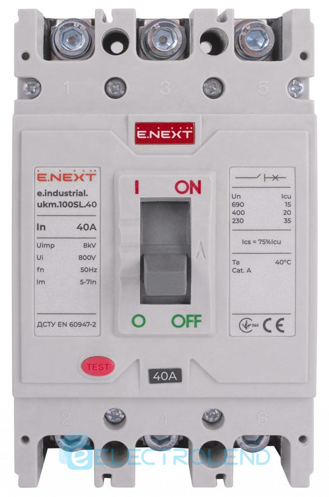 I0660011 Силовий автоматичний вимикач e.industrial.ukm.100SL.40, 3р, 40А