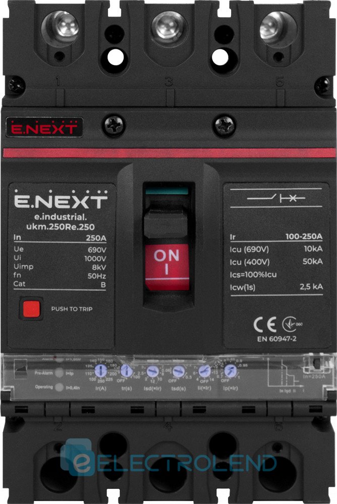 I0770022 Силовий автоматичний вимикач e.industrial.ukm.250Re.250 з електронним розчеплювачем, 3р, 250А