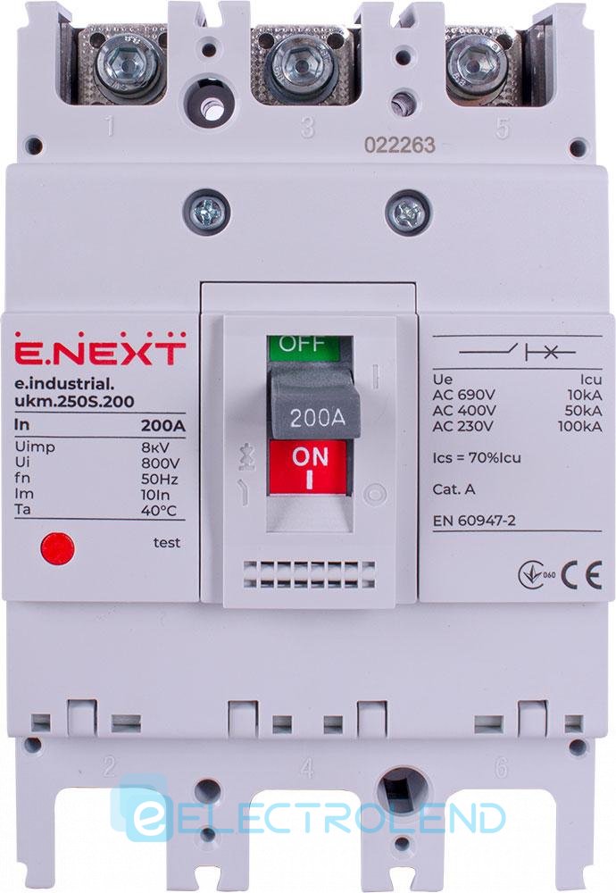 I0010008 Силовий автоматичний вимикач e.industrial.ukm.250S.200, 3р, 200А