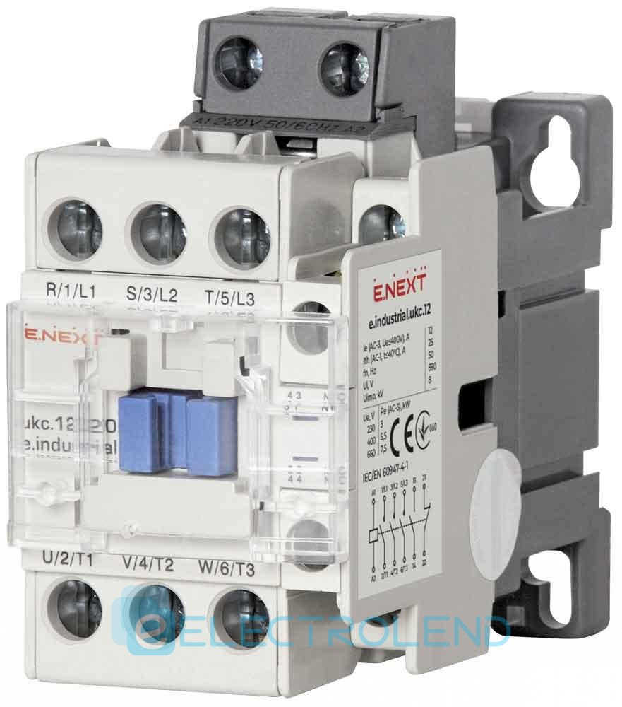 I.0090002 Контактор e.industrial.ukc.12.220, 12А, 220В, no+nc