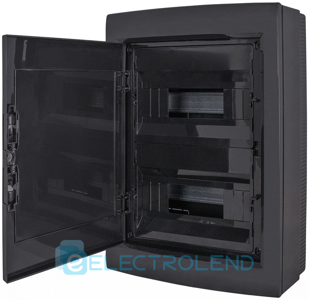 CP32924B Корпус пластиковий на 24 модулів e.plbox.pro.n.24b.black навісний, чорний з непрозорими дверцятами IP40
