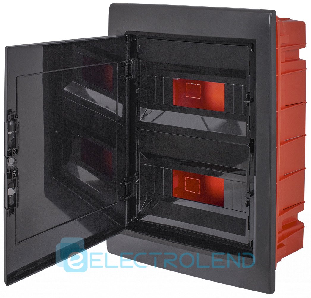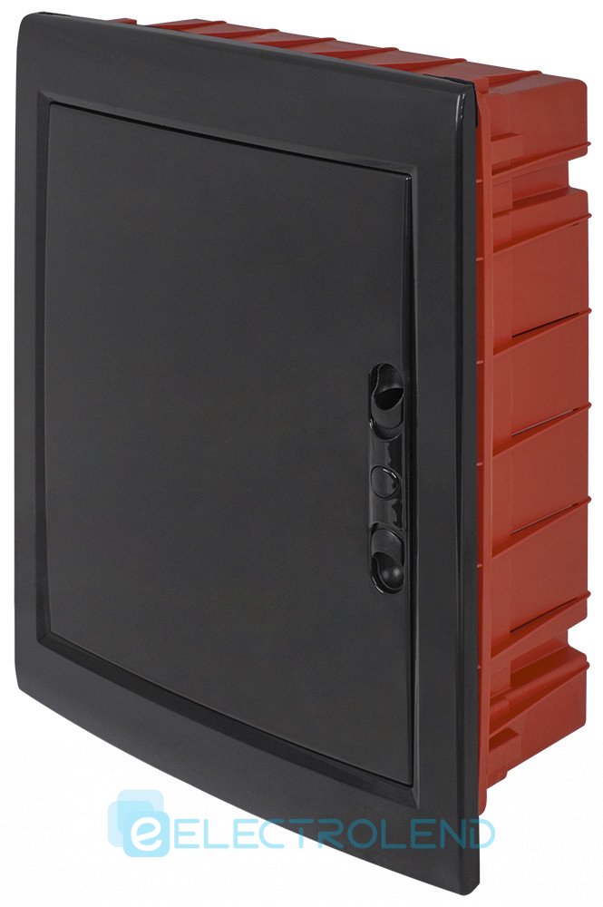 CP12924B Корпус пластиковий на 24 модулів e.plbox.pro.w.24b.black вбудованний, чорний з непрозорими дверцятами IP40