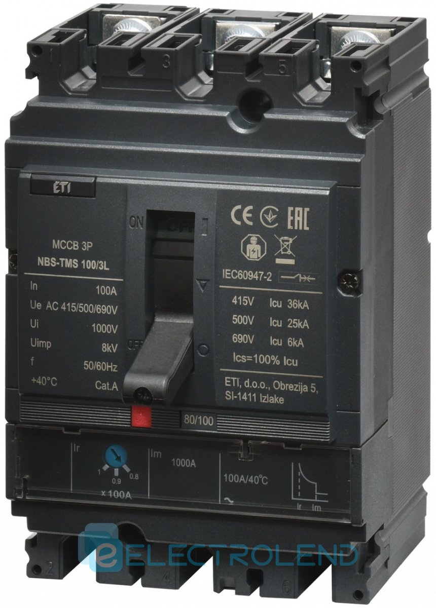 4673007 Авт. вимикач NBS-TMS 100/3L 100A (36kA, (0.8-1)In/фікс.) 3P ETI