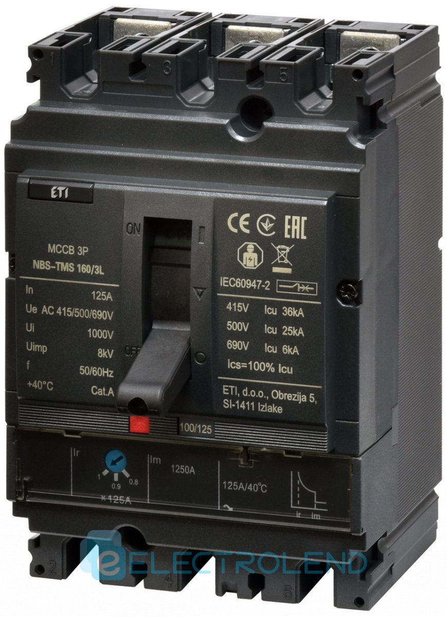 4673008 Авт. вимикач NBS-TMS 160/3L 125A (36kA, (0.8-1)In/фікс.) 3P ETI
