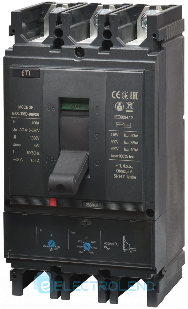 4673131 Авт. вимикач NBS-TMD 630/3L 500A (36кА, (0.7-1)In/(5-10)In) 3P ETI