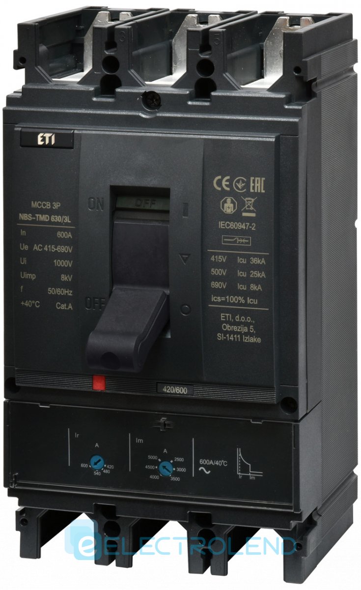4673132 Авт. вимикач NBS-TMD 630/3L 600A (36кА, (0.7-1)In/(5-10)In) 3P ETI