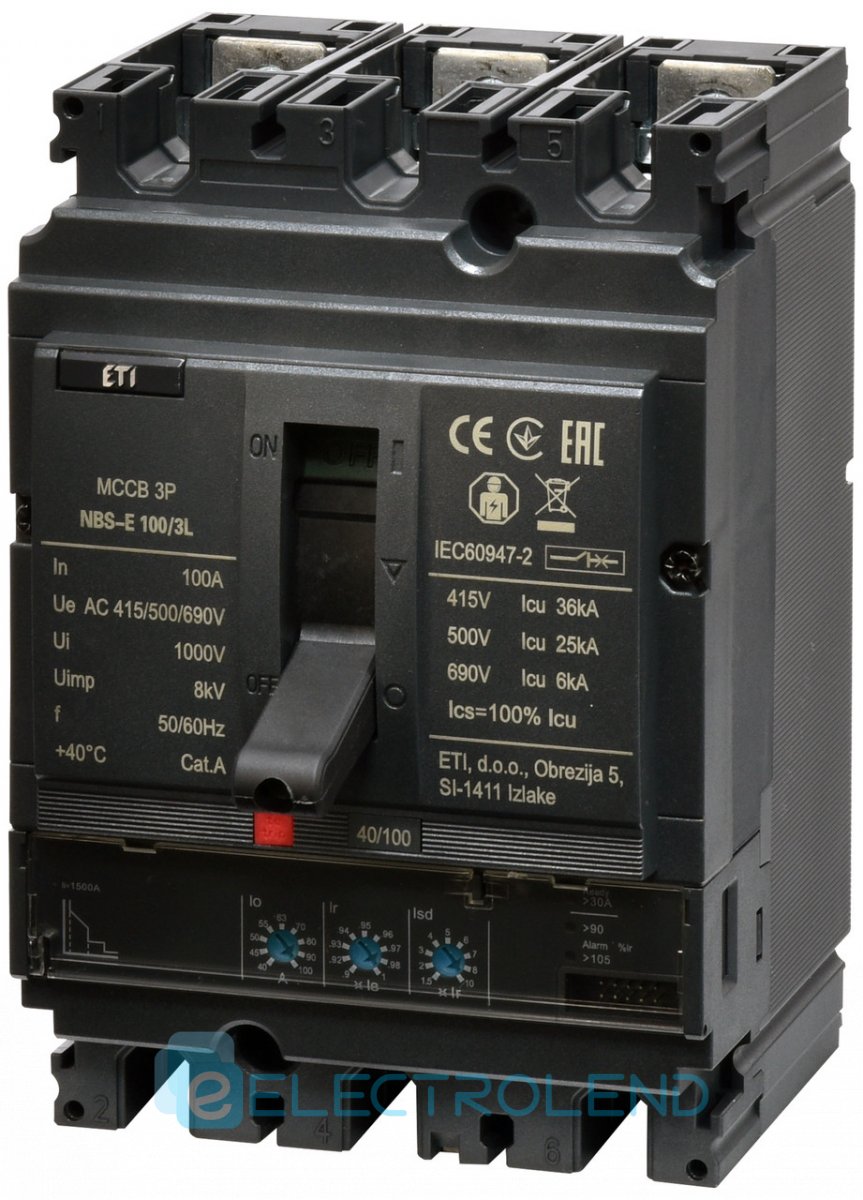 4673041 Авт. вимикач NBS-E 100/3L 100A (36kA, (0.4-1)In/(1.5-10)Ir) 3P ETI