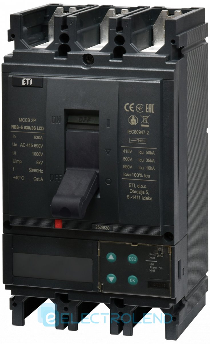 4673147 Авт. вимикач NBS-E 630/3S LCD 630A (50kA, (0.4-1)In/(1.5-12)In) 3P ETI