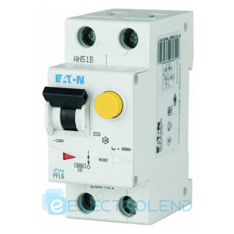 286433 Диференціальний автомат 2п 25A PFL6-25/1N/B/003 30mA EATON