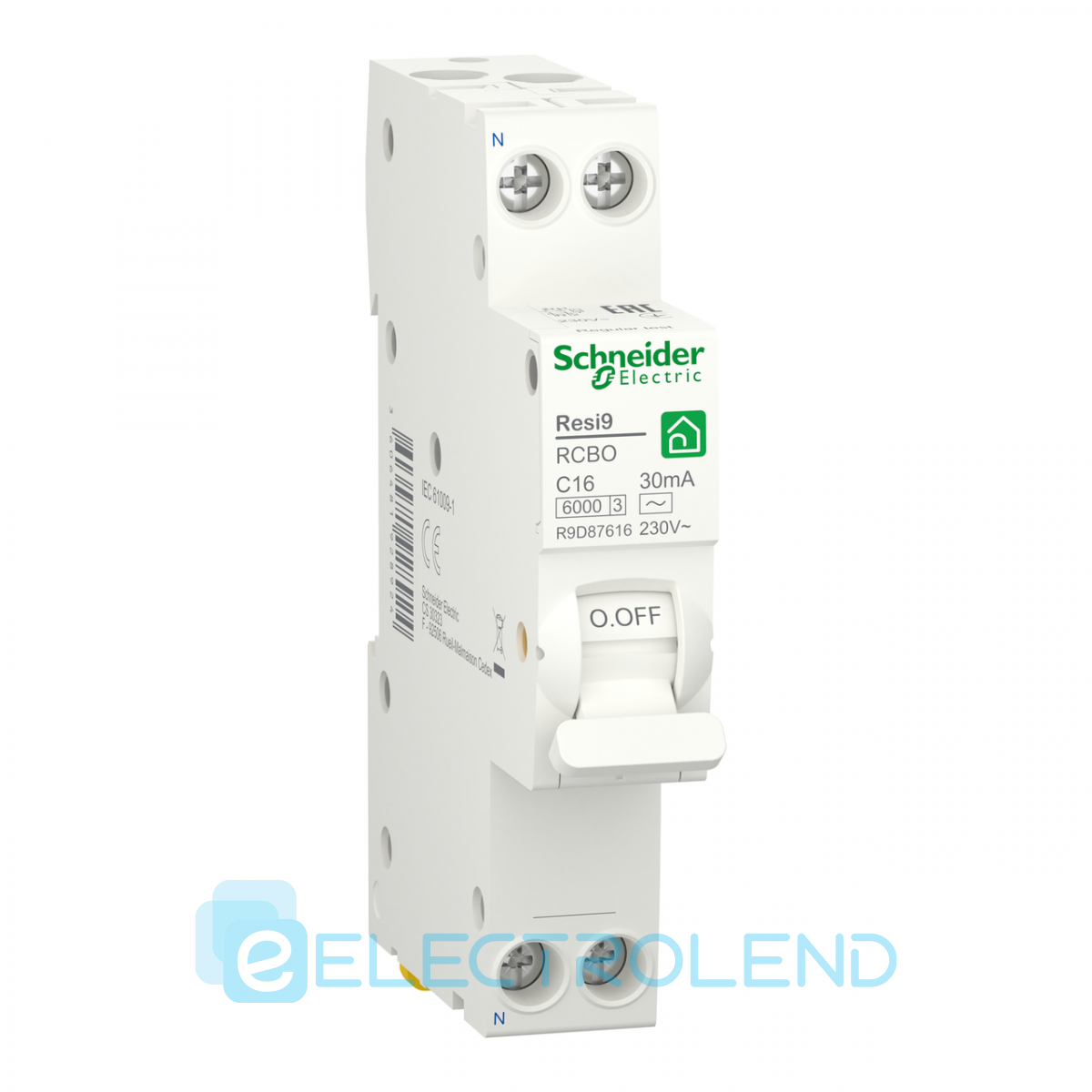 R9D87616 Диференційний вимикач RESI9 6kA 1модуль 1P+N 16A C 30mA АC Schneider