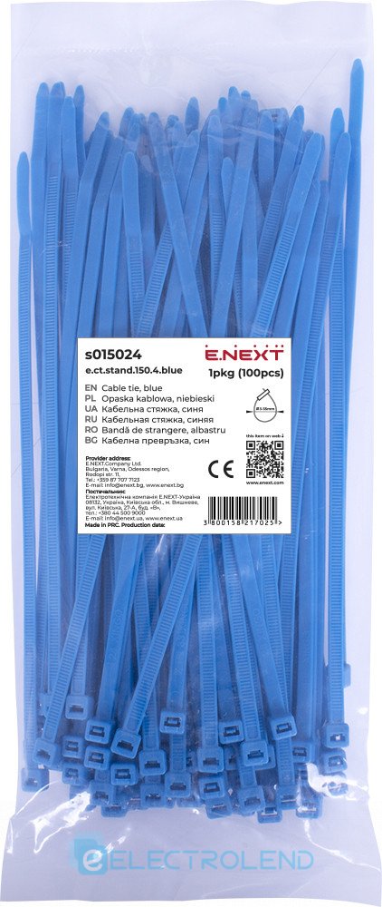 s015024 Кабельна стяжка e.ct.stand.150.4.blue (100шт), синя