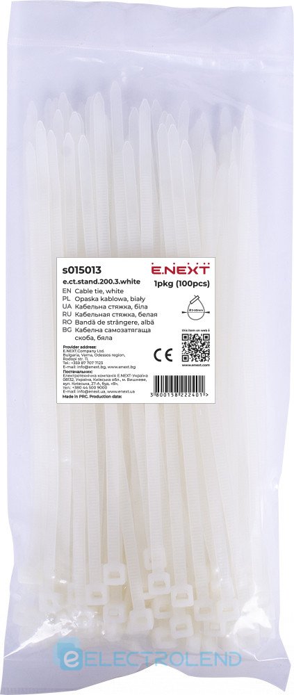 s015013 Кабельна стяжка e.ct.stand.200.3.white (100шт), біла