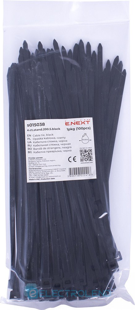 s015038 Кабельна стяжка e.ct.stand.200.5.black (100шт), чорна