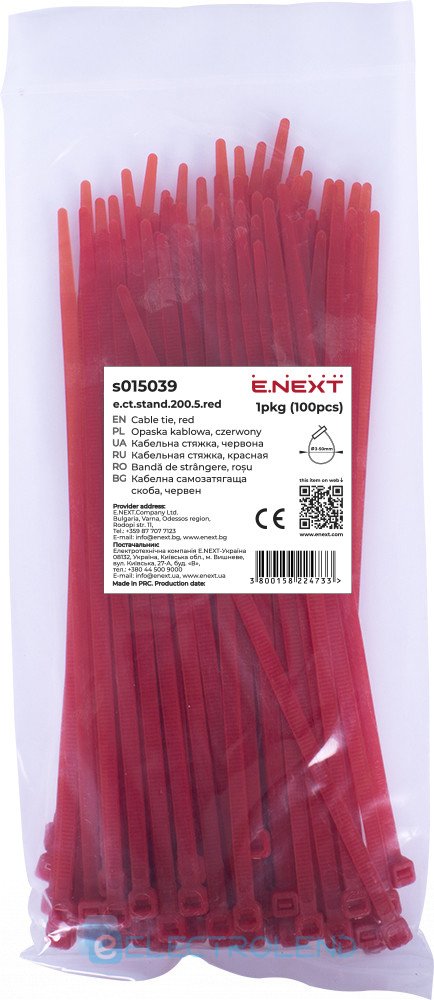 s015039 Кабельна стяжка e.ct.stand.200.5.red (100шт), червона