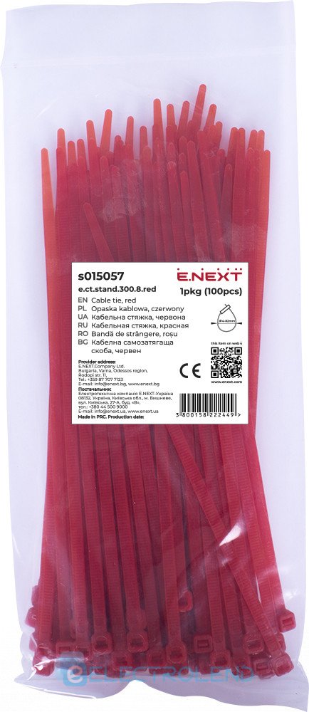 s015057 Кабельна стяжка e.ct.stand.300.8.red (100шт), червона