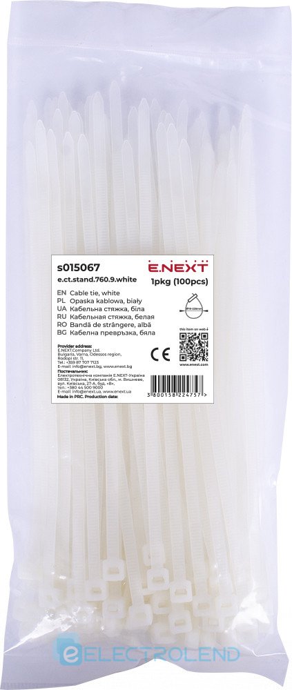 s015067 Кабельна стяжка e.ct.stand.760.9.white (100шт), біла